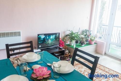 Ubytovanie Apartment Eve sa nachádza približne 1,9 km od miesta Pláž Varna. Ponúka výhľad na mesto a hostia tu majú k dispozícii terasu a balkón. Ubytovanie je situované 7 min.