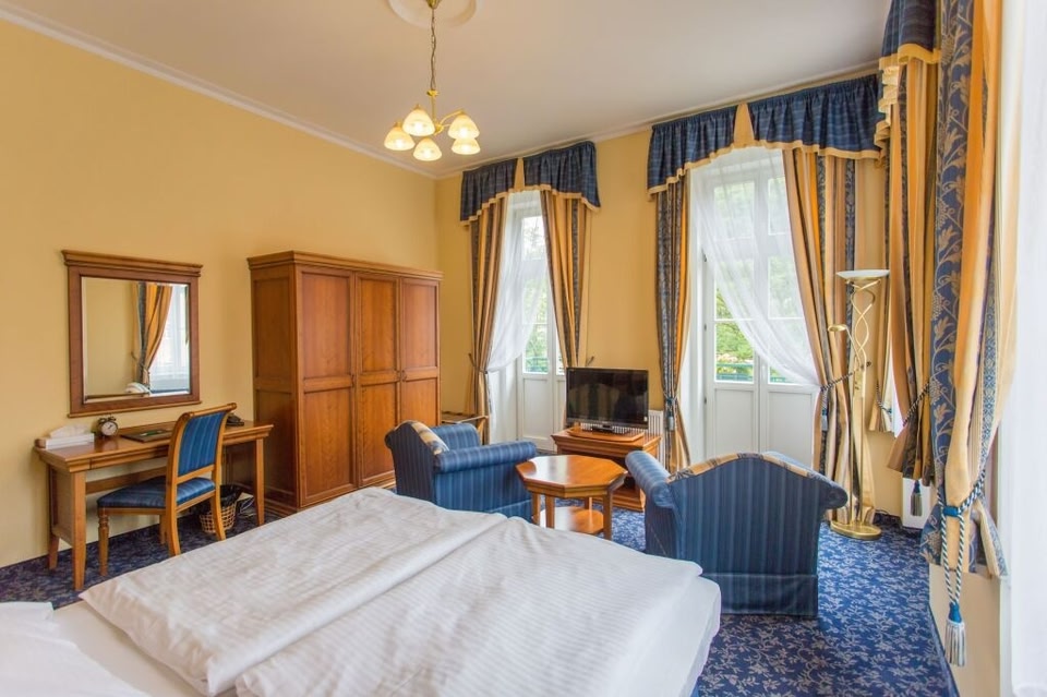 The three-and-a-half-star Hotel Ontario has a 150-year tradition and boasts a unique and quiet location above the famous Mill Colonnade, right in the center of Karlovy Vary. All rooms have a wonderful view of the city or the greenery.