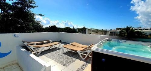 Unique Rooftop JacuzziExperience luxury at Bloom! exclusive boutique b&b with a year-round large outdoor Jacuzzi on the cozy rooftop terrace, offering stunning city views.Artistic Decor by Local ArtistsIndulge in the creativity of local artists as each unit at Bloom! is uniquely decorated, with some featuring private spa or jacuzzi baths, bathrobes, and free toiletries.Convenient LocationLocated in the heart of Playa del Carmen, just 700m from ADO International Bus Station, Bloom! exclusive boutique b&b is near Playa del Carmen Maritime Terminal and Kool Beach Club for a perfect getaway.Book your stay at Bloom! now for a luxurious and artistic experience in Playa del Carmen.