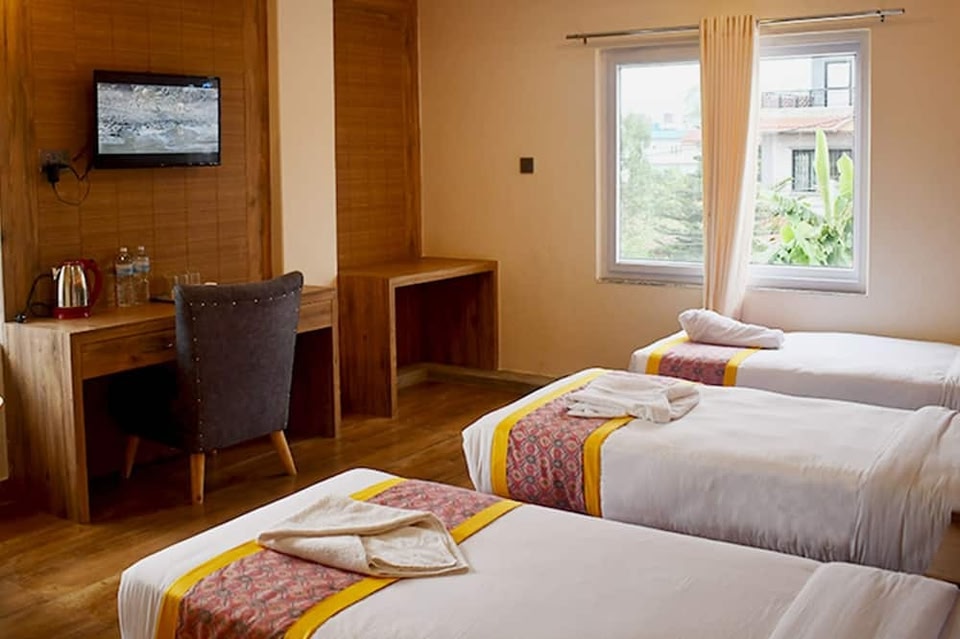 Located in Pokhara, Hotel Pauwa Pokhara is in the city center and near the airport. The area's natural beauty can be seen at Seti River Gourge and Gupteswar Gupha, while Pokhara Regional Museum and Pokhara International Mountain Museum are cultural highlights. Hotel in Pokhara with free breakfast and a 24-hour front deskA restaurant, a bar/lounge, and a snack bar/deli are available at this smoke-free hotel. Free full breakfast, free WiFi in public areas, and free self parking are also provided. Other amenities include a coffee shop/cafe, coffee/tea in a common area, and dry cleaning. Change of towels is available on request. Hotel Pauwa Pokhara offers 39 accommodations with complimentary bottled water and slippers. These individually decorated and furnished accommodations include desks. Beds feature premium bedding. 40-inch flat-screen televisions come with satellite channels. Bathrooms include showers with rainfall showerheads. Change of towels and change of bedsheets can be requested.