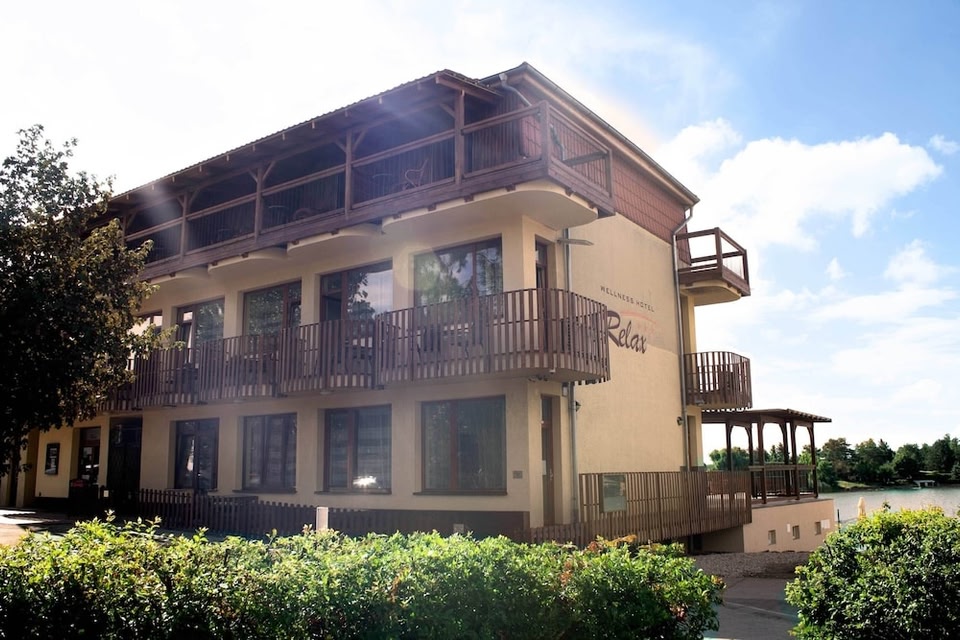 Hotel Wellness Relax sa nachádza v Senci, 800 metrov od aquaparku Aquathermal Senec. Ponúka súkromnú pláž. Všetky izby sú vybavené LCD TV. Izby majú bezplatné Wi-Fi pripojenie, súkromnú kúpeľňu a balkón.