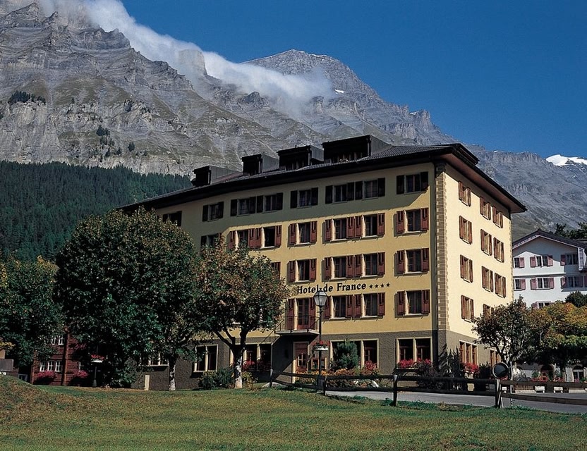 The hotel Thermalhotel De France is situated in the centre of Leukerbad at the Dorfplatz, next to the thermal bath Walliser Alpentherme. Free WiFi is provided on-site.
