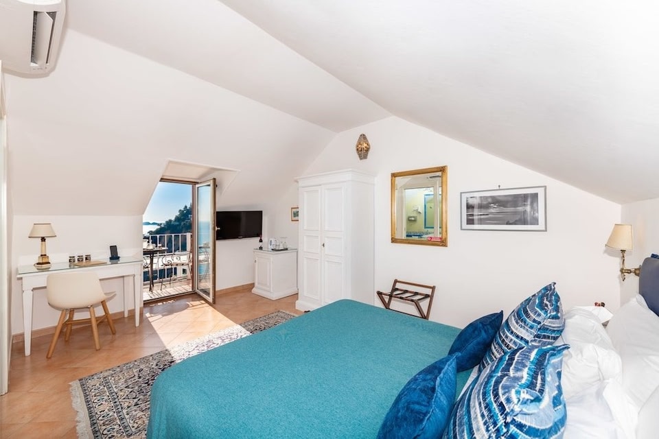 Admire the panorama from your private balcony at Villa Gabrisa, a warm and friendly establishment set in upper Positano and boasting unforgettable sea views.