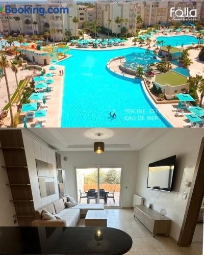Ubytovanie Palm Lake Resort - Appartement terrasse sa nachádza v destinácii Monastir len 5,2 km od miesta Golf Palm Links Monastir. Hostia tu majú k dispozícii sezónny vonkajší bazén, záhradu, terasu a bezplatné Wi-Fi.